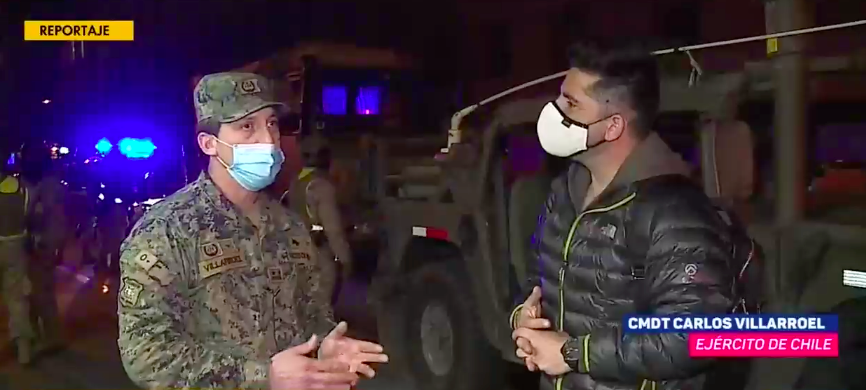 A horas de comenzar el nuevo toque de queda, los militares se preparan para recorrer las calles de Santiago y Recoleta con el fin de informar a las personas las normativas vigentes. "Entre las 21:00 y las 23:00 lo que buscamos es hacer una labor educativa", contó el comandante Carlos Villarroel.