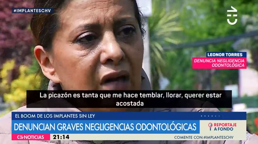 Leonor Torres es otra víctima de la permisividad que existe en Chile, llevando a personas sin los conocimientos necesarios a realizar implantes dentales.