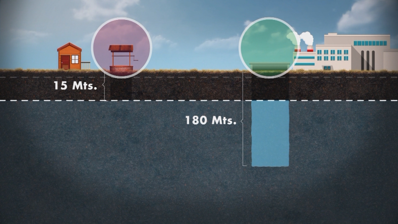 Pero eso no es todo, ya que también aterriza el problema indicando que reside en la desigual profundidad a la que llegan los pozos de las empresas que tiene la asignación de los derechos del agua respecto al resto de las personas, tal como queda en evidencia en este gráfico.