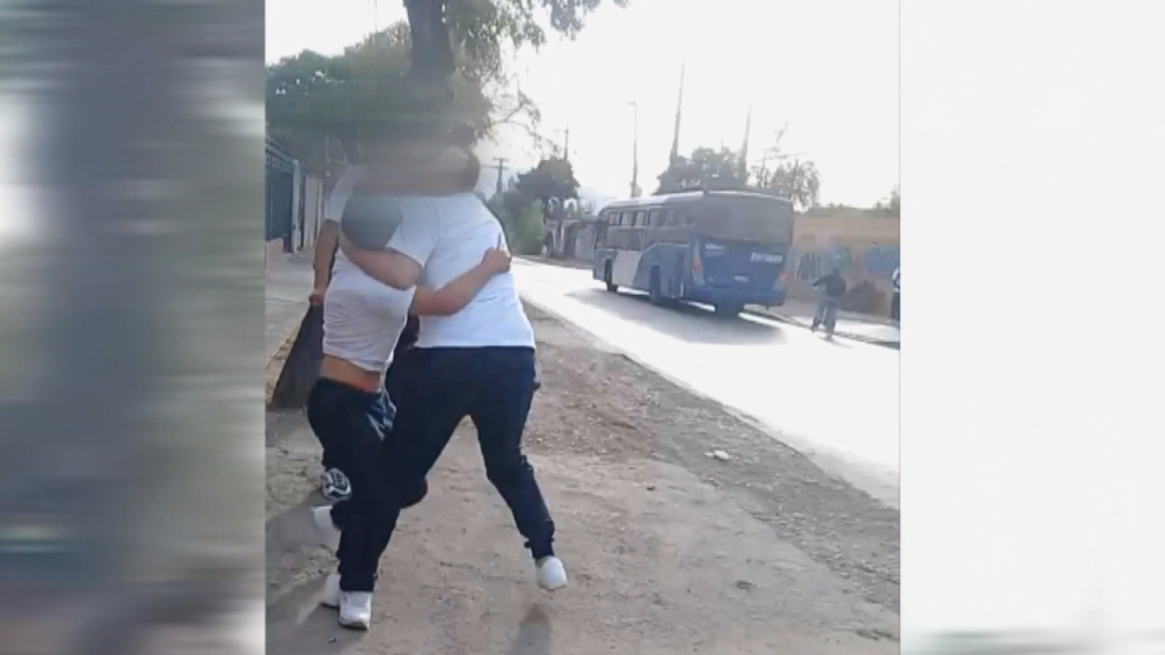Un video grabado por un alumno muestra a dos escolares peleando. Una de ellas tiene un arma blanca. En el registro se ve cómo pelea sin tener conciencia del daño que puede causar. Impresiona la rabia que tienen y cómo no son capaces de controlarla.