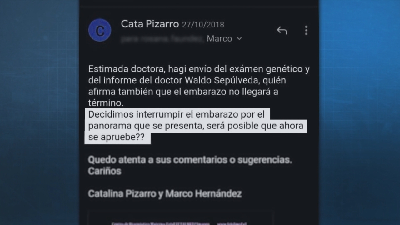 Catalina Pizarro tuvo que llegar a las 20 semanas con un diagnóstico que le otorgaba el derecho a interrumpir su embarazo por la causal de inviabilidad fetal, pero la Clínica Tabancura no se lo permitieron y niegan que lo haya solicitado formalmente.