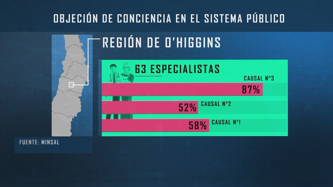 Le sigue O'Higgins, donde el 87% de los médicos del sistema público tampoco está dispuestos a cumplir con esta parte de la ley.
