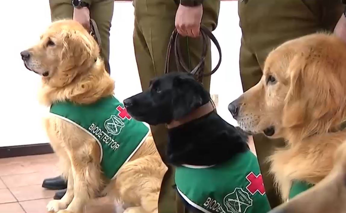 El equipo de golden retriever y labradores serán los primeros canes biodetectores del virus en Chile y están en su última etapa de entrenamiento para poder salir a lugares públicos y detectar solo con su olfato a personas contagiadas por coronavirus.