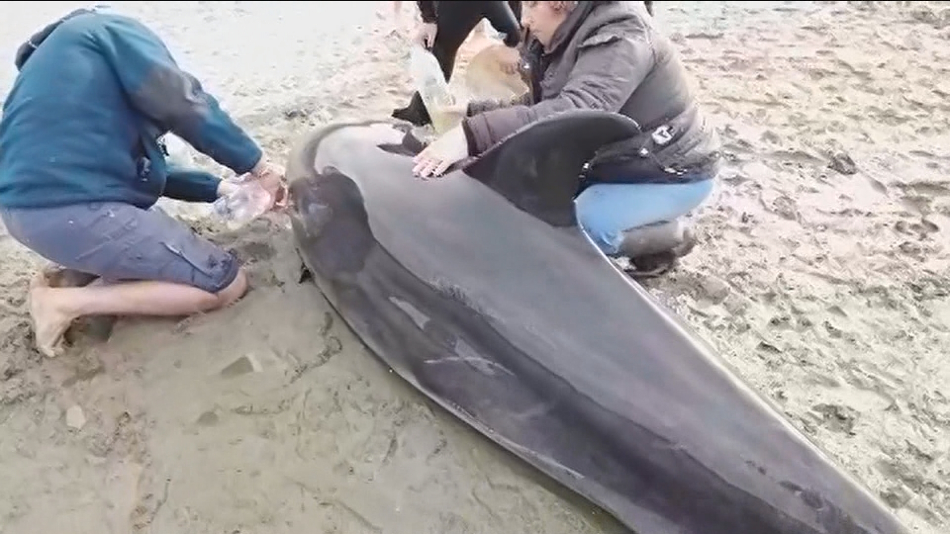 Ahí vieron a dos delfines nariz de botella varados en la playa. Primero los socorrieron de la forma que pudiera y después llamó a las autoridades.
