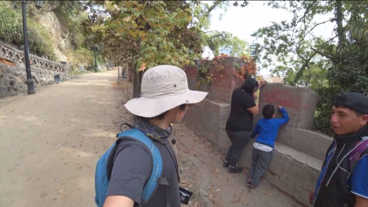 Pero ella no es la única. Sea Hyun Lee es un joven turista coreano que al pasear en el cerro Santa Lucía se topó con un hombre, una mujer y un niño, el que estaba rayando una de las paredes.