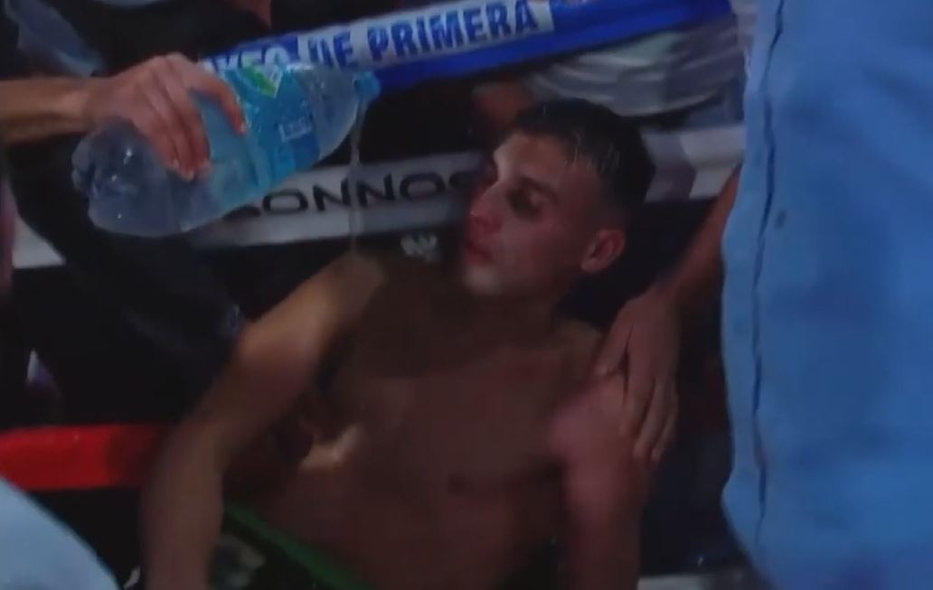 Santillán escuchó el fallo con la cabeza gacha y sostenido por un integrante de su equipo, tras lo cual se desplomó en una esquina del ring.