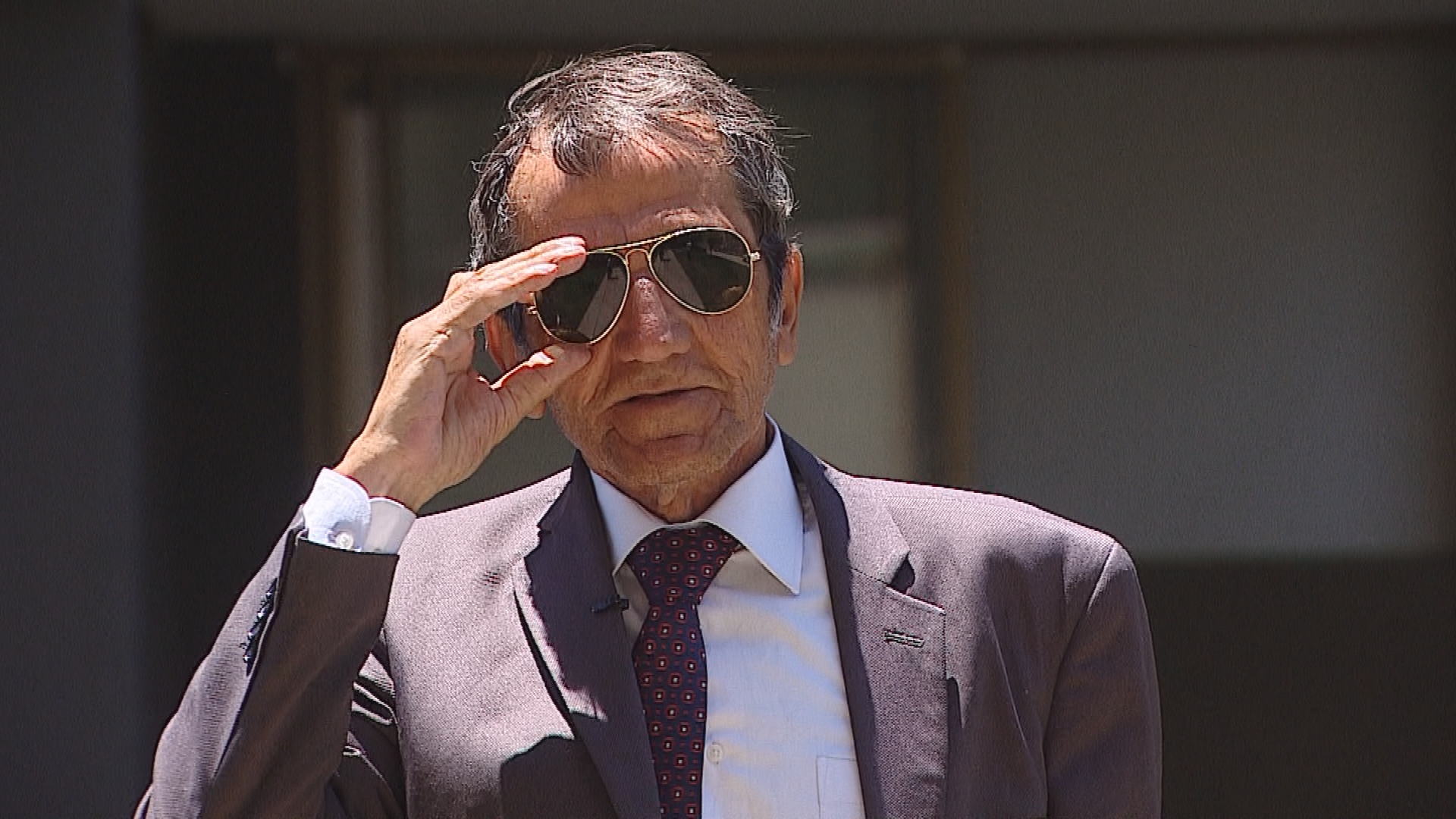 En la imagen aparece de traje, con una bebida en la mano lentes oscuros y con total tranquilidad en plena protesta del 4 de diciembre. Una postal que ya es un verdadero ícono del estallido social.
