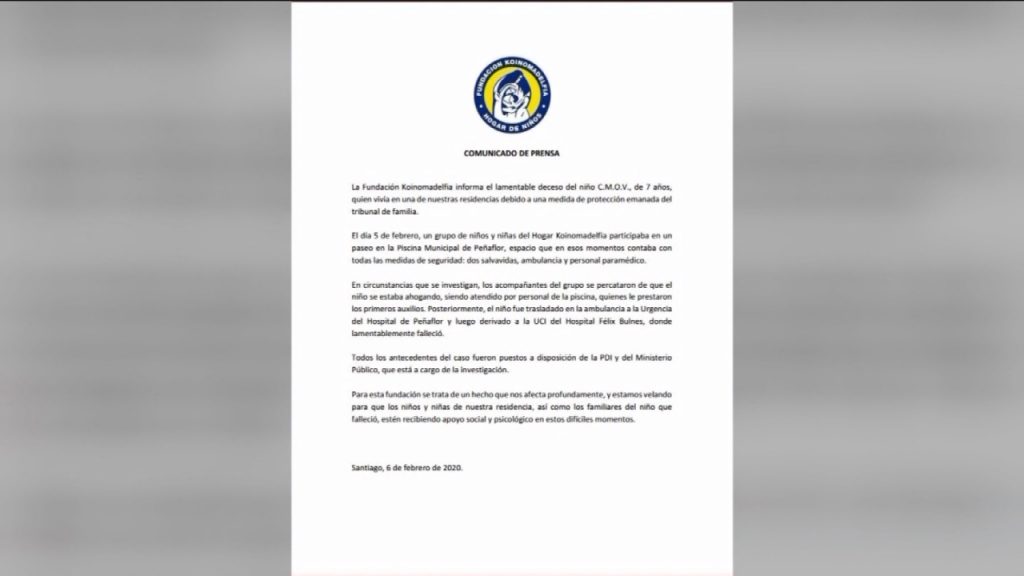 Desde la residencia Koinimadelfia, informaron que "en circunstancias que se investigan, los acompañantes del grupo se percataron de que el niño se estaba ahogando" y que "todos los antecedentes fueron puestos a disposición de la PDI".
