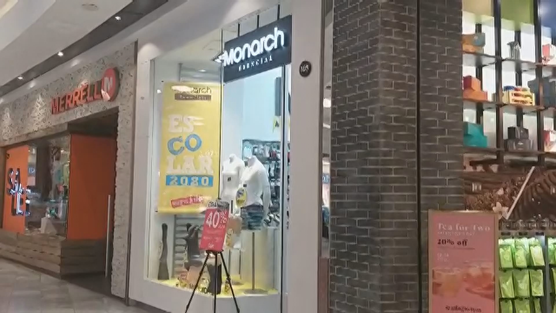 La vitrina de la tienda Monarch en un mall capitalino cambió completamente de la jornada de día martes a miércoles, ya no se ve la polémica foto de una niña con uniforme escolar, ahora la imagen es mucho más simple, solo hay letras en la publicidad.