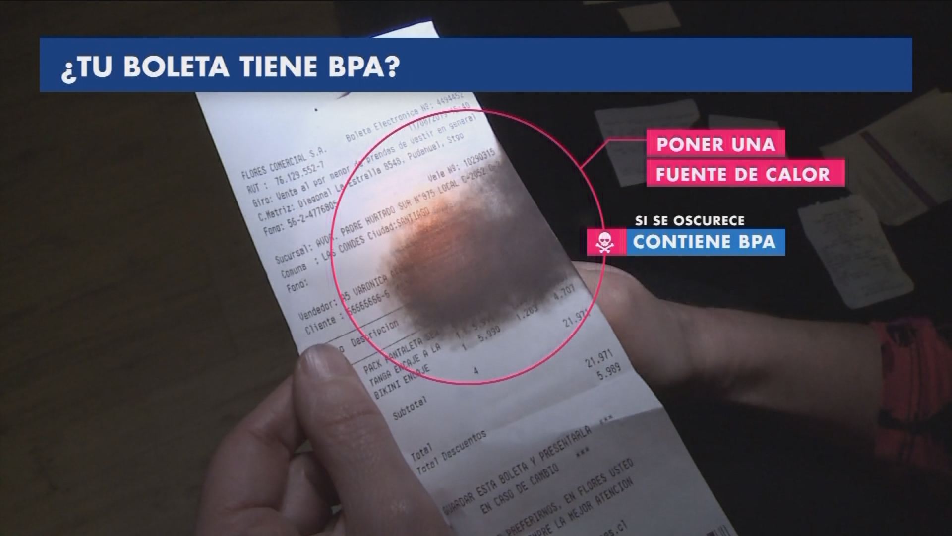 "Este papel térmico está hecho principalmente de BPA para que tenga este efecto revelador. Para que aparezcan las letras", explica el académico de ingeniería química de la Universidad Católica, César Sáez.