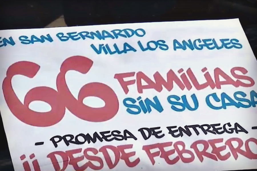 “El campamento se cerró en 2012 para que, en un año, nos harían entrega de nuestras casas. Pero han pasado todos estos años con ilusiones y promesas que no se han cumplido hasta el día de hoy”, denunció Mónica Núñez, una de las dirigentas del proyecto.