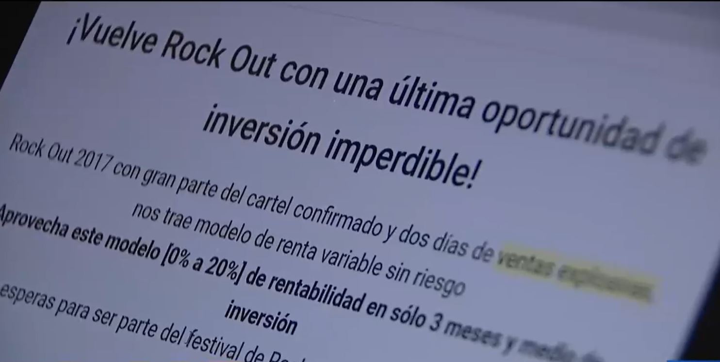 "Un poco antes el evento Rock Out nos dicen que es la última oportunidad que tenemos para invertir y que tienen ventas explosivas, siendo que este mismo concierto fue suspendido por baja ventas de entradas".