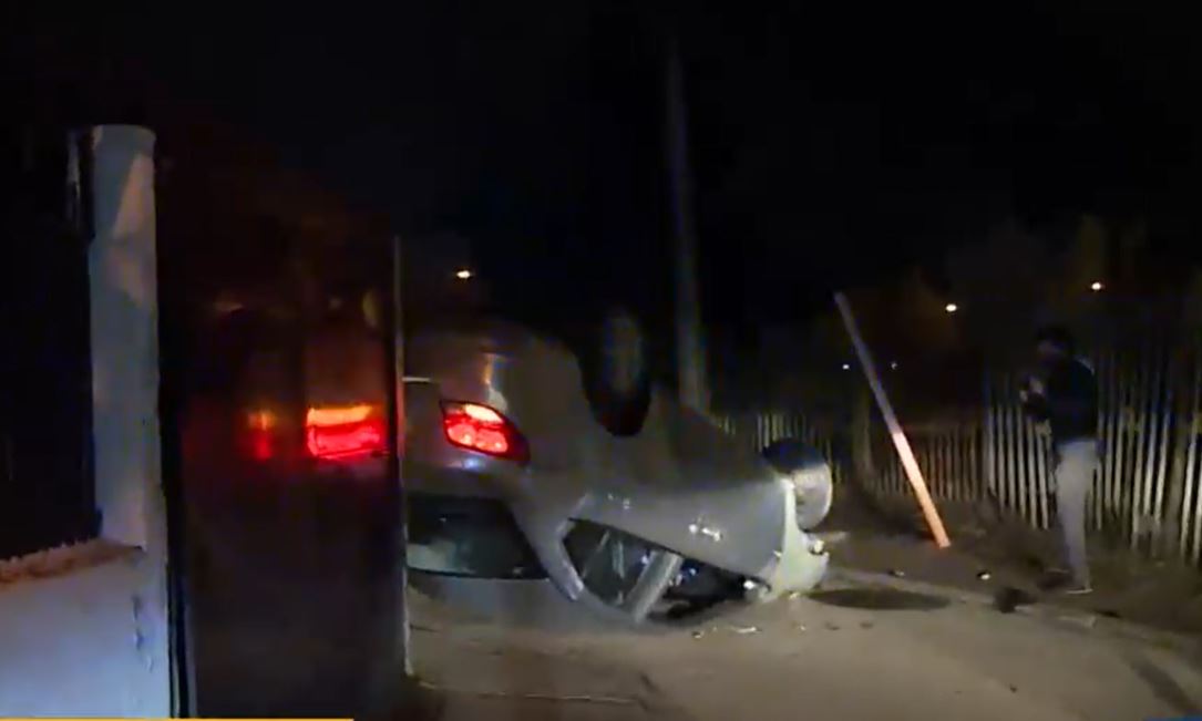 Ante esto, el auto con dos ocupantes escapa del control. A gran velocidad los vehículos policiales siguen a los prófugos. Persecución a la que se suman más funcionarios de la PDI. Sin embargo, ocurre algo inesperado: la camioneta terminó volcado en plena vereda. Situación que lejos de hacer que se entreguen, derivó en una huida a pie.