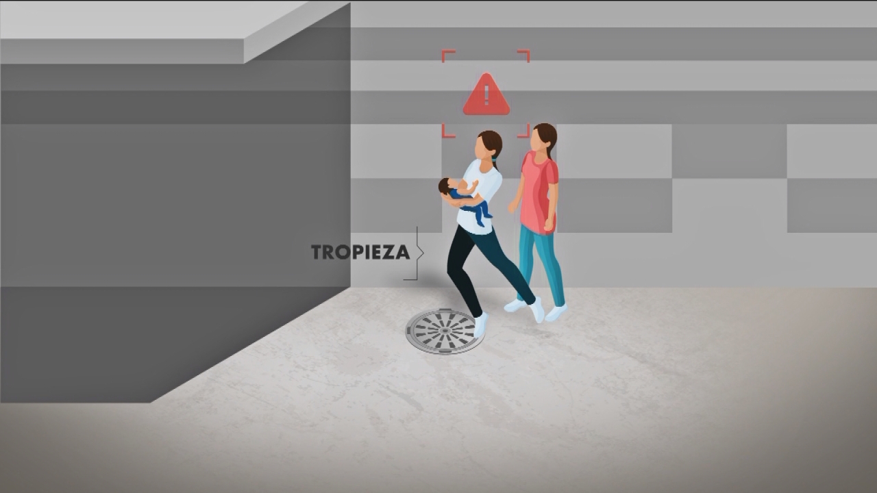 Lee también: Madre denuncia que su bebé falleció por culpa de una vacuna"En la plaza, la señora, la enfermera que la tenía, se fue hacia atrás y se tropezó en una rejilla de estas de agua y ahí la niña saltó y cayó al suelo", relató Acuña.