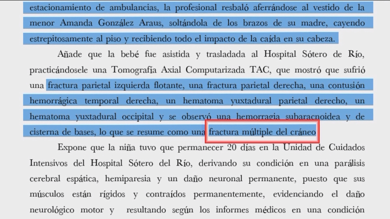 Marcela Acuña, también, confirma que la niña estaba sana y que "salió todo bien, su parto normal", a pesar de esto, terminó con consecuencias neurológicas.