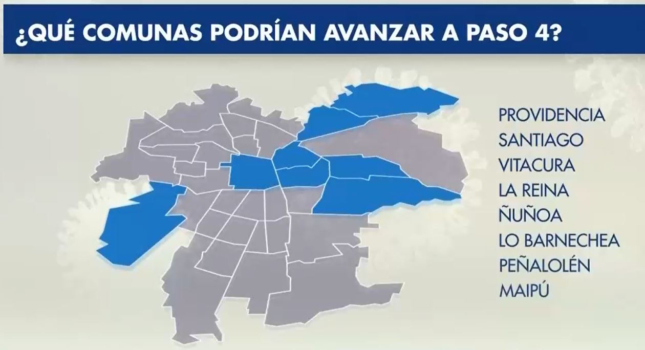 En la Región Metropolitana, Providencia, Santiago, Vitacura, La Reina, Lo Barnechea y Ñuñoa, entre otras comunas, estarían cerca del paso llamado Apertura Inicial.