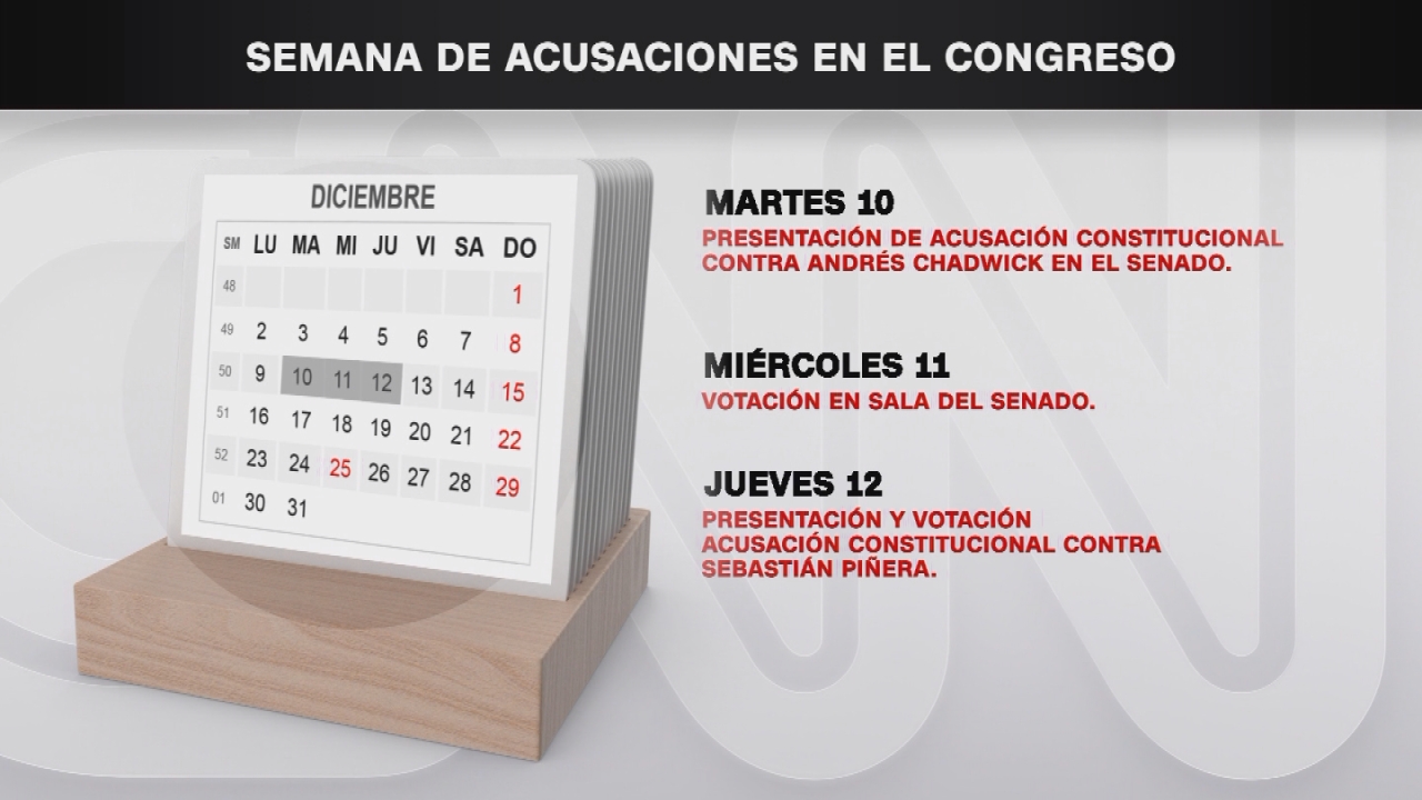 Esta es una semana clave para el oficialismo, específicamente para el ex ministro del Interior Andrés Chadwick y el presidente Sebastián Piñera. Este martes, miércoles y jueves son los días en que se conocerá el futuro de las acusaciones constitucionales en su contra.