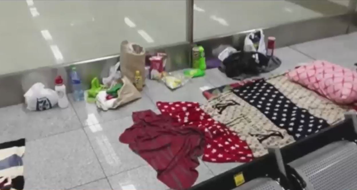 Ahí se le dejó instalar una improvisada cama en el piso donde pasa las noches, ya que el resto de los días los pasa caminando por el lugar que debía ser solo una escala más en su viaje por el sudeste asiático.