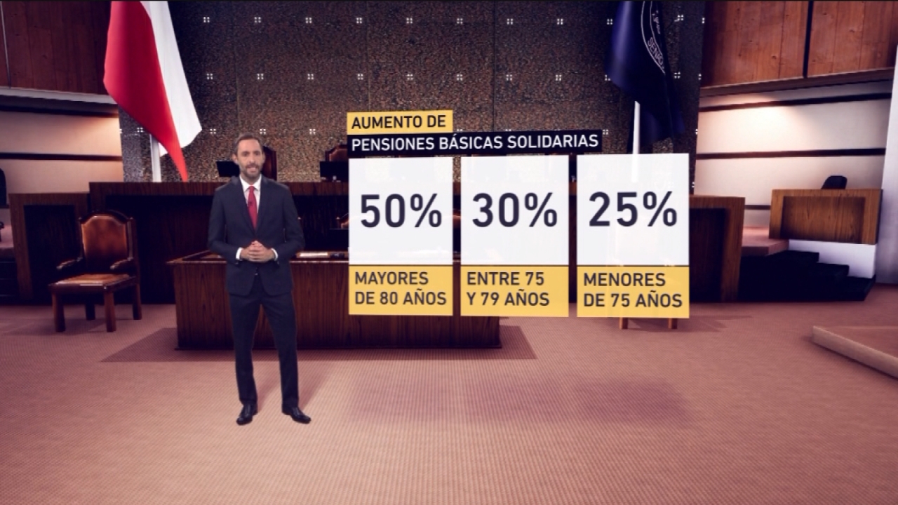 Esto se suma a lo que ya aprobó el Congreso en diciembre pasado, que permitió un aumento del 50% de las pensiones básicas solidarias, o sea las más bajas, para los mayores de 80 años; un 30% para los pensionados entre 75 y 79 años; y un 25% para quienes son menores de esa edad.