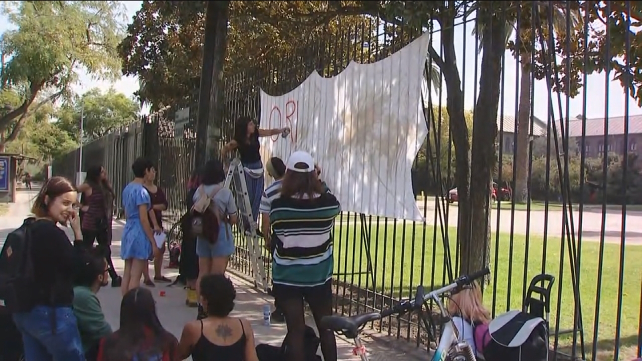 "¿Mandaría a su hija a clases si su profesor fuera un abusador?", le dice una de las estudiantes de la UC a una persona que estaba reclamando porque el recinto se encontraba en toma desde horas de esta mañana.