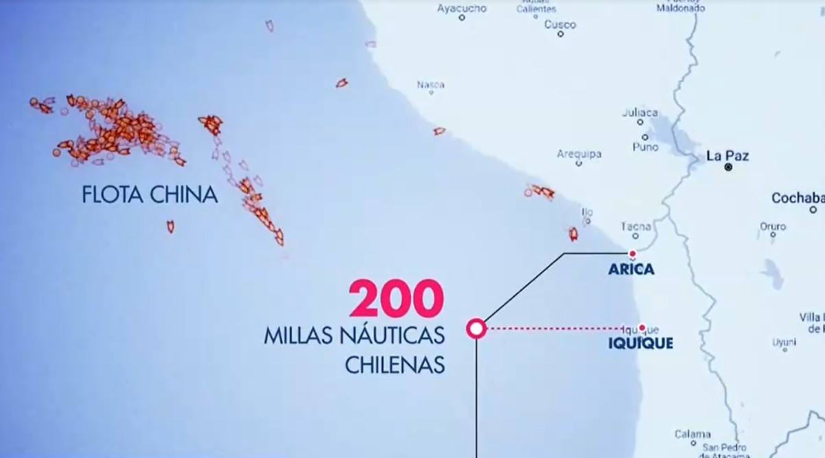 La enorme flota ha sido rastreada a lo largo de su descenso hacia el sur, luego que se registrara su actuar frente a Ecuador y ahora en Perú. El temor es que eventualmente apaguen sus GPS y pesquen de todas formas en territorio marítimo nacional.