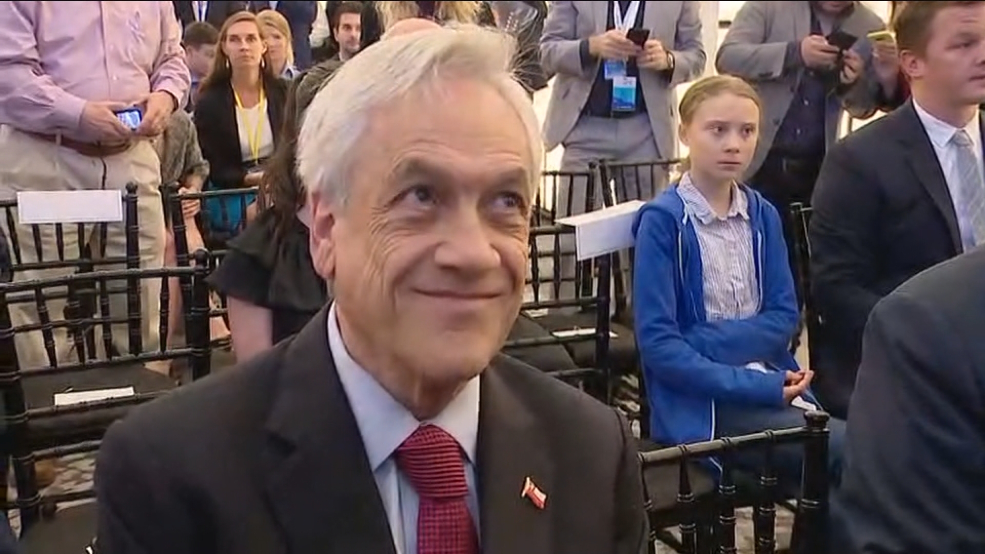 Ocasión en la que la activista climática coincidió con el presidente Sebastián Piñera y ante las cámaras de la prensa mundial rechazó sentarse junto al mandatario chileno y otros jefes de estado.