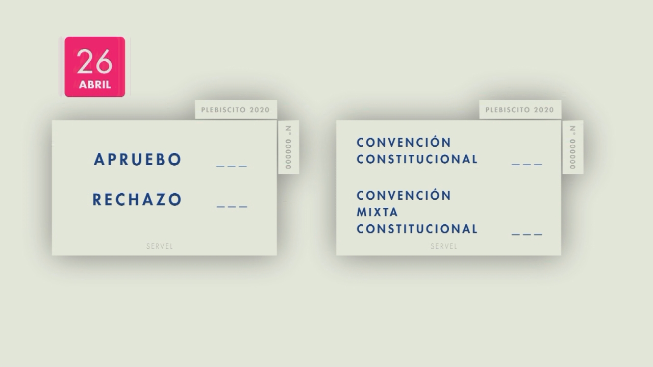 El plebiscito del 26 de abril será el primer gran hito electoral de 2020. El plebiscito de entrada será con voto voluntario, a través de dos papeletas. Una para Aprobar o Rechazar la redacción de una nueva Constitución y la otra para elegir el mecanismo que la redactaría: una Convención Constitucional o una Convención Mixta Constitucional.