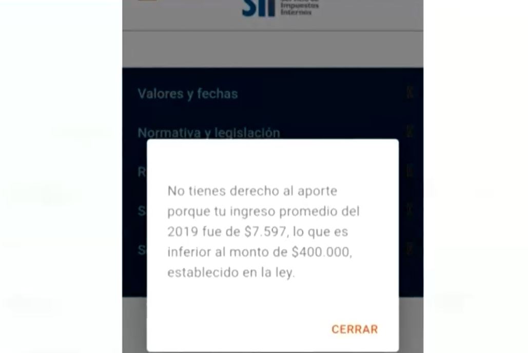 Lee también: Bono $500 mil: El sistema del SII para que trabajadores puedan corregir ingresos de julioPero no es la única persona ni el único problema. Roberto Godoy tiene 60 años, lleva cinco meses con el contrato suspendido y en junio pasado la AFC le pagó $225 mil. Postuló al Ingreso Familiar de Emergencia, pero fue rechazado ya que los ingresos formales de su hogar superan el umbral para poder acceder al beneficio. Es por eso que decidió optar por el bono para la clase media, pero hubo otra sorpresa.