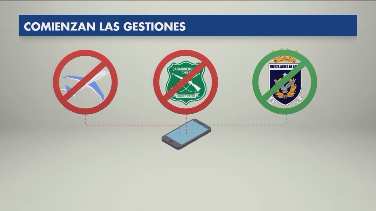 Luego, se llamó a Carabineros, quienes no podían facilitar una aeronave hasta el día siguiente. Por último, acuden a la FACh a las 22:41 horas.