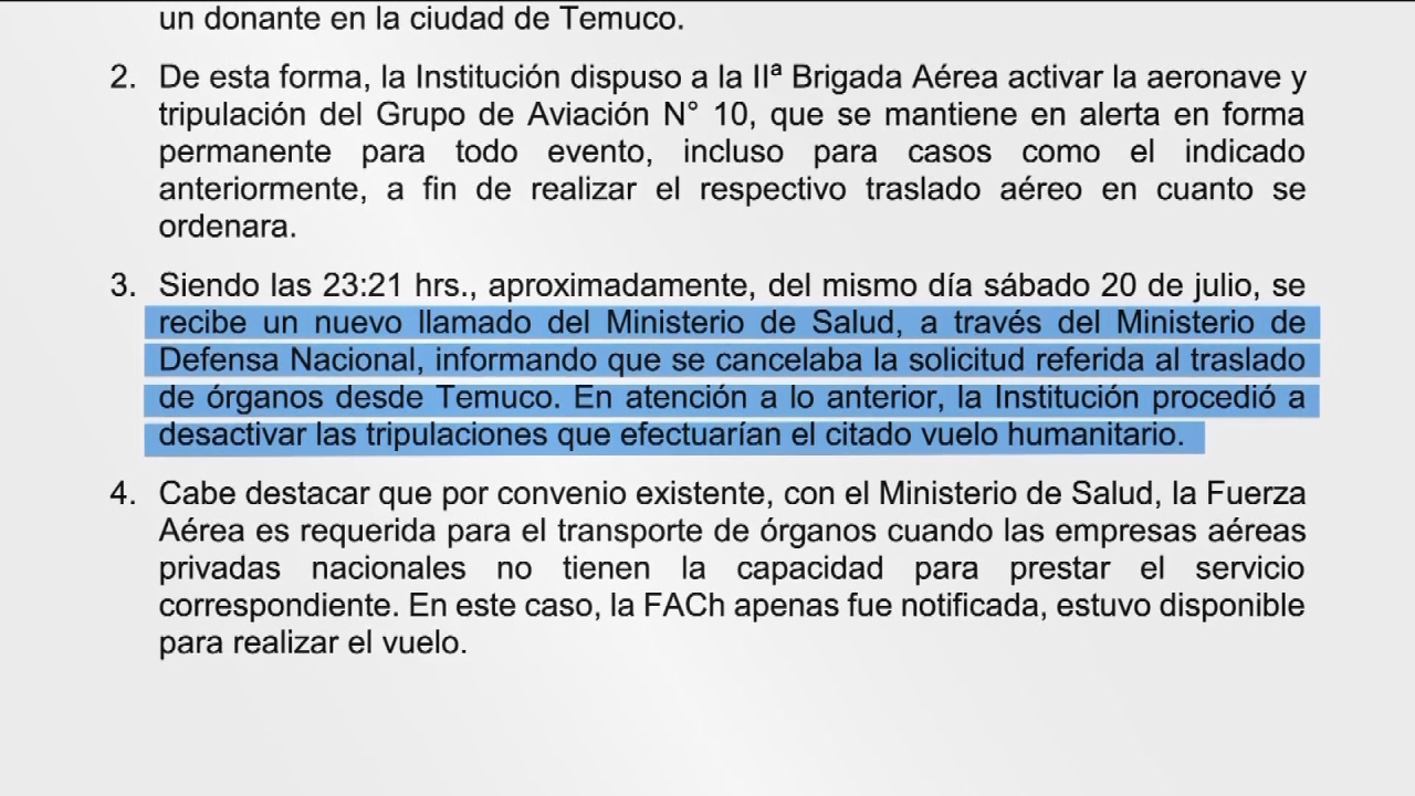 Esta mañana, la FACh, a través de un comunicado, aclaró que sí hubo avión disponible para transportar los órganos desde Temuco, pero el Ministerio de Salud fue quien se retractó.