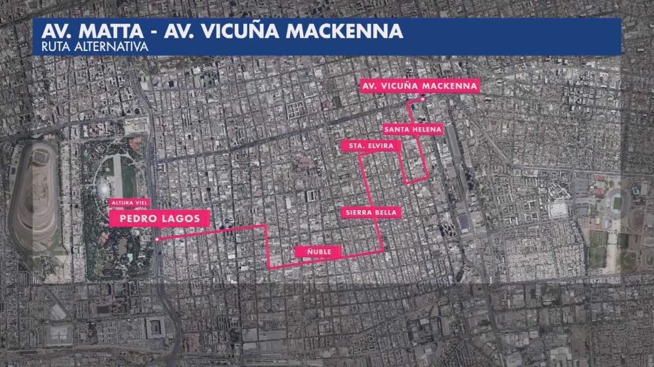 Con esta ruta se parte por Pedro Lagos, luego se dobla por Carmen, hasta llegar a Ñuble. Llegamos hasta la calle Santa Elena, donde finalmente ingresamos a Avenida Matta. El otro auto en cambio tiene cuatro cuadras de retraso.
