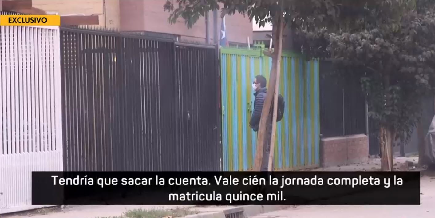 Un equipo de CHV Noticias llegó hasta el lugar y preguntamos cuánto cuesta dejar a un niño por una semana. Una mujer que salió de la casa señaló que la matrícula vale $15 mil y la jornada completa $100 mil.