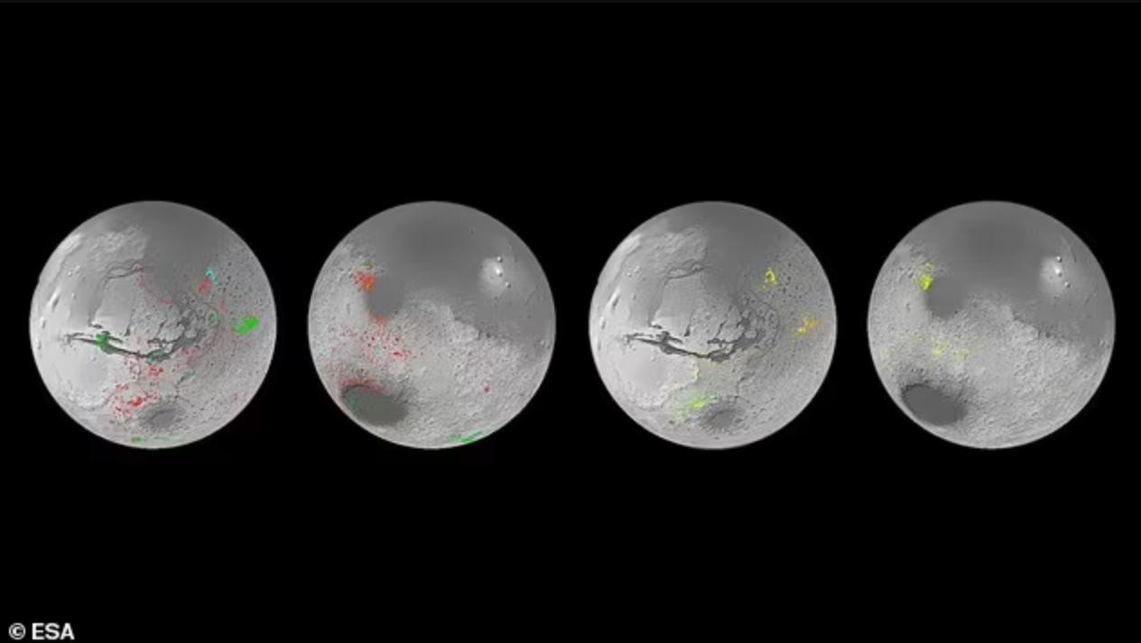 El gráfico fue elaborado por científicos de la Agencia Espacial Europea (ESA), quienes se basaron en datos de su Mars Express Observatory y el Mars Reconnaissance Orbiter de la NASA.