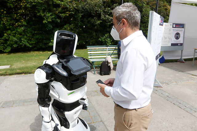 El colegio Verbo Divino de Las Condes dispuso de un robot que pudiera responder las consultas de quienes llegaron para votar en ese local por el plebiscito constitucional.