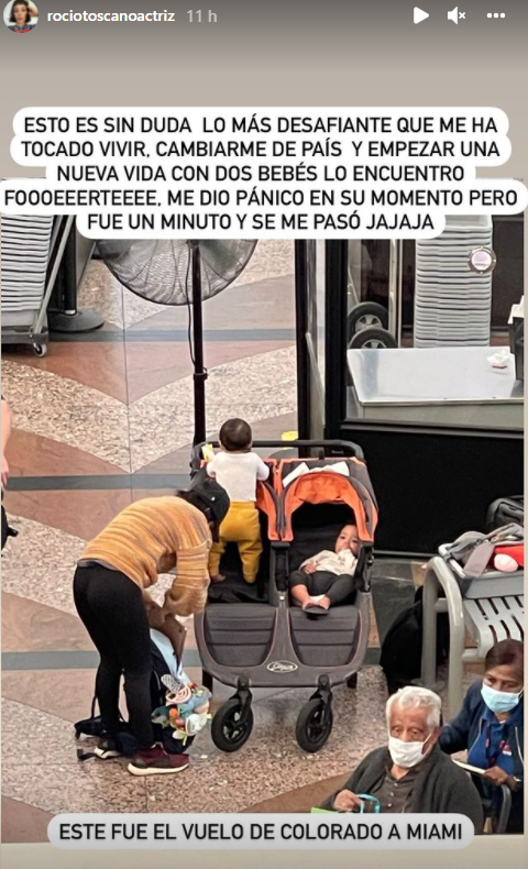 La actriz chilena, Rocío Toscano, utilizó su cuenta de Instagram para compartir una serie de historias que evidencian todas las peripecias que vivió junto a sus dos guaguas durante su viaje de regreso a Chile desde Estados Unidos, país donde se radicó hace algún tiempo para el nacimiento de sus mellizos, acompañada de su familia.