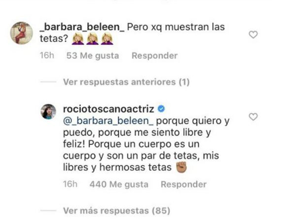 "Porque quiero y puedo. Porque me siento libre y feliz. Porque un cuerpo es un cuerpo y son un par de tetas. Mis libres y hermosas tetas", le respondió a una usuaria.