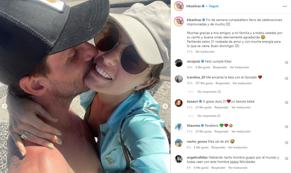 besada por el intérprete de 45 años, desatando una serie de comentarios dedicados a esta nueva pareja, como "me encanta Kika con el Gonzalo" o "viva el amor hermana".