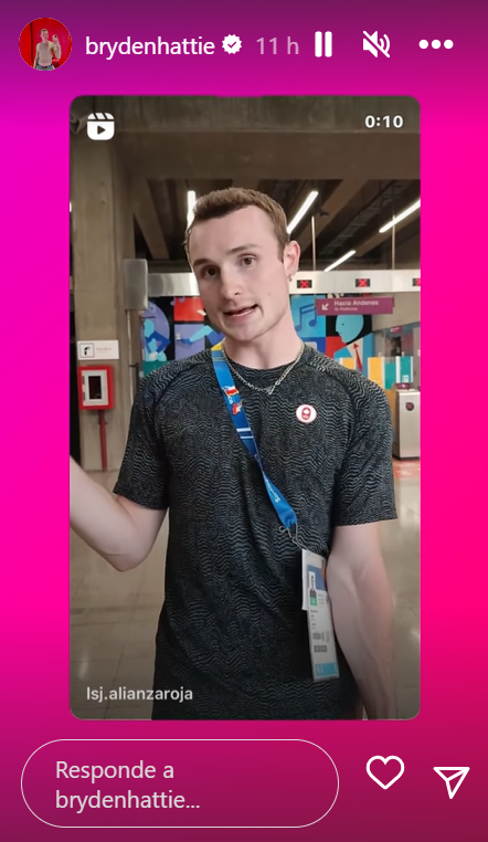 Sin embargo, en los registros no aparece solo, sino que en compañía de su amigo estadounidense Tayler Downs, quien también realiza la misma disciplina y se ha vuelto viral.@brydenhattie Y LA CHEESE getting ready to EAT 💅🏼🧀 #chile #panamericangames #santiago #chile2023 #santiagodechile #sports #diving #teamcanada #santiagochile #ylaquesoporte🧀❌☕ #YLACHEESE ♬ Benjamins Deli - JRitt