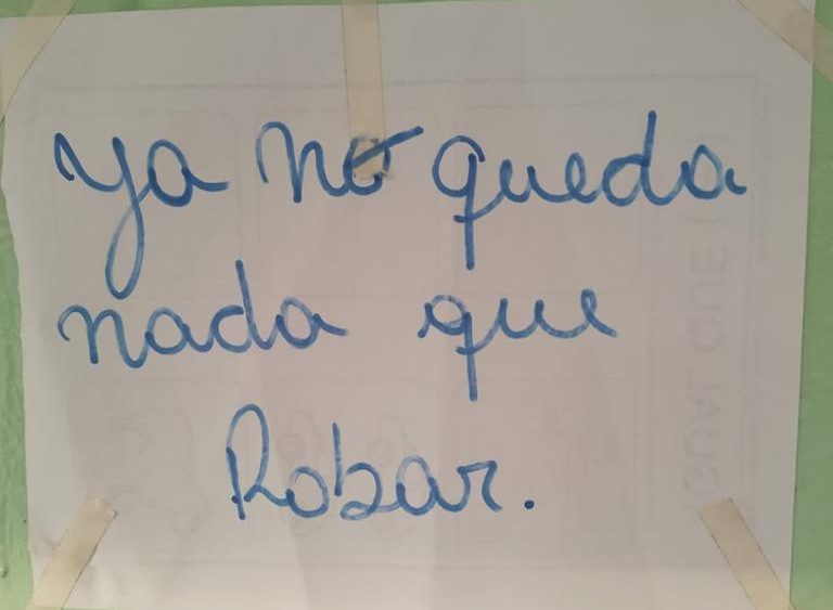 Lejos de conformarse con eso, los inescrupulosos también se llevaron uno de los portones de la escuela, el cual tuvo que ser reemplazado por un panel de madera.