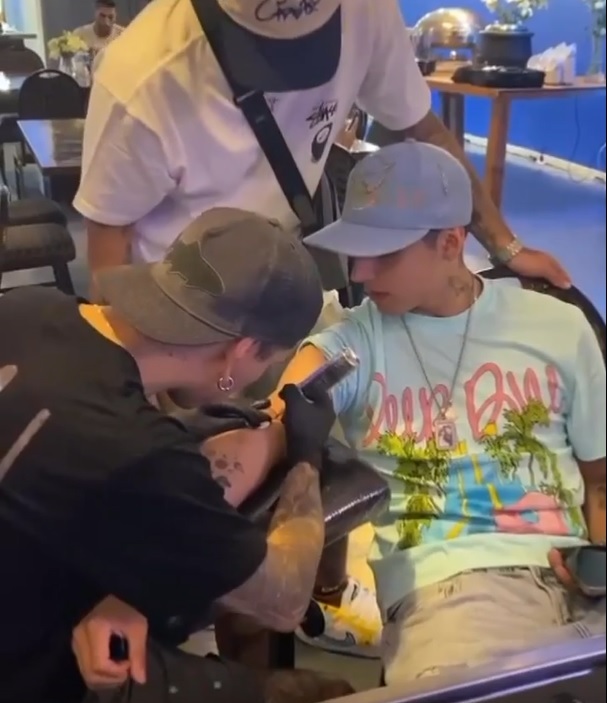 El particular momento ocurrió tras bambalinas del Movistar Arena, antes que el autor de "La Terapia" diera su concierto ante miles de fanáticos. "Ellos dos se aman, no cualquiera se hace un tatuaje por la amistad", contó el tatuador de los artistas urbanos.
