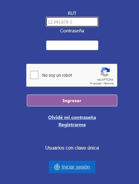 • Inicia sesión con tu RUT y contraseña. Si no tienes una cuenta, crea un usuario, clave y completa tus antecedentes personales. Si estás cursando 4to medio, ingresa tu NEM estimado. También puedes ingresar con tu Clave Única.