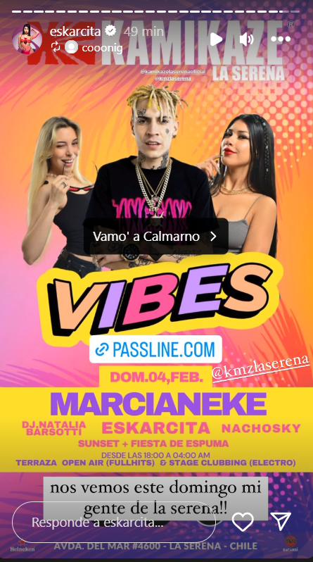 Así lo anunció la ex Gran Hermano a través de sus historias de Instagram, donde reposteó la publicidad del evento que se realizará en la discoteque Kamikaze en La Serena el domingo 4 de enero.