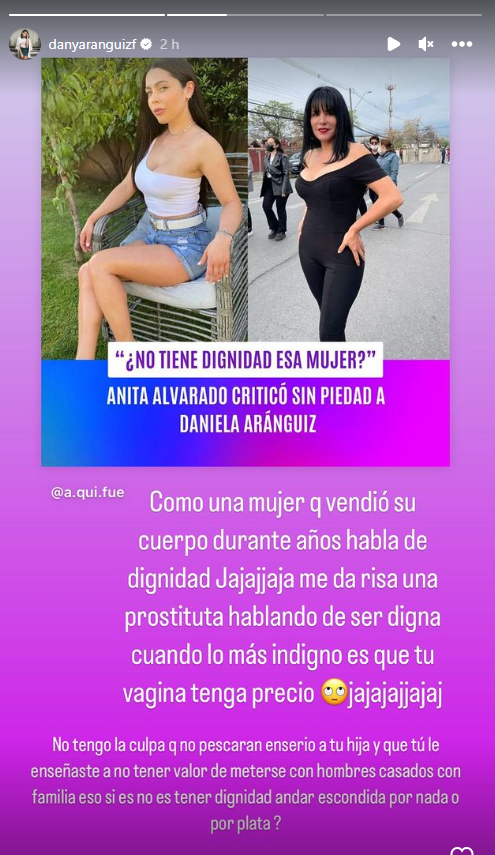 Pero Aránguiz no tardó mucho en responder aquellos cuestionamientos y a través de una historia de Instagram lanzó un duro comentario sobre el pasado de Anita.