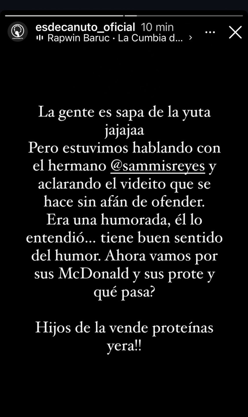 La situación generó revuelo entre los internautas y horas más tarde, el pastor Rocha comentó en Instagram: "La gente es sapa de la yuta. Estuvimos hablando con el hermano y aclarando el videíto que se hace sin afán de ofender".