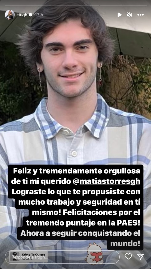 A través de una historia en su Instagram, la presentadora afirmó estar "feliz y tremendamente orgullosa de mi querido Matías.