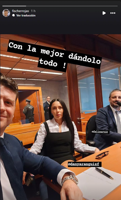 A través de su cuenta de Instagram, Rojas subió una foto desde el interior del Centro de Justicia en compañía de su clienta y el abogado Felix Arto.
