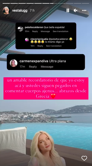 La cantante no dudó en responderles. "Un amable recordatorio de que yo estoy acá y ustedes siguen pegados en comentar cuerpos ajenos... abrazos desde Grecia", escribió.