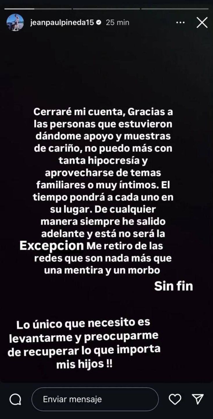"Cerraré mi cuenta. Gracias a las personas que estuvieron dándome apoyo y muestras de cariño, no puedo más con tanta hipocresía y aprovecharse de temas familiares o muy íntimos", parte el mensaje del futbolista.