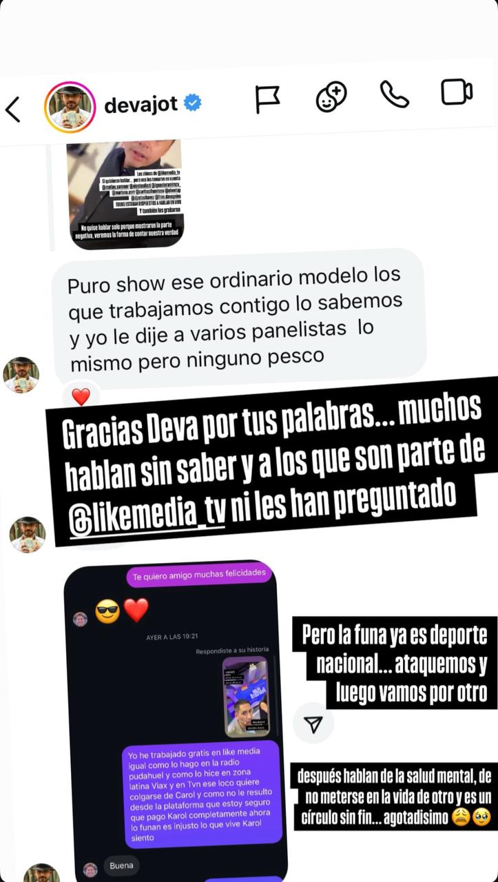 "Muchos hablan sin saber y a los que son parte de Like Media ni les han preguntado", expresó Karol a raíz de un mensaje con palabras de apoyo para él.