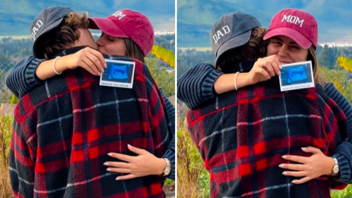 En el registro ella lo abraza de frente y muestra una pequeña ecografía que pareciera tener escrito el nombre "Valentina"; sin embargo, la pareja no ahondó en detalles sobre el tiempo de gestación o el sexo del bebé.